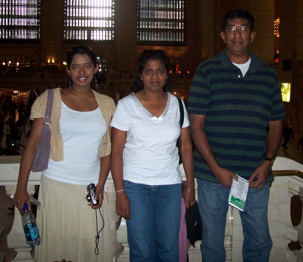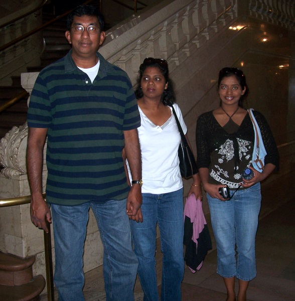 Rukmal Abergoonesekera with wife Dilrukshi and twin daughter Shalini